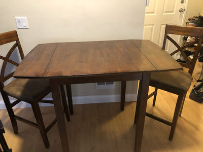 This is a small dining room table with extendable wings …